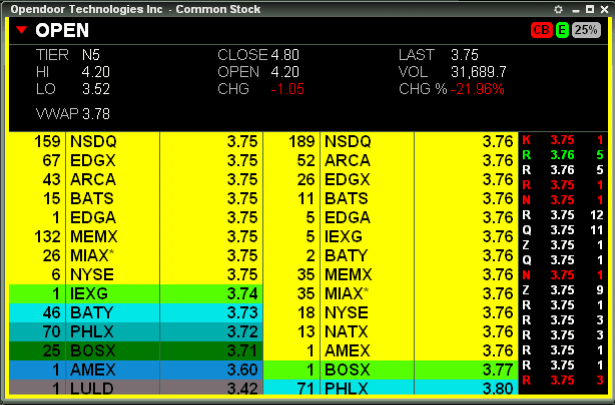 Starting at the top, this Level 2 window tells me the company is Opendoor Technologies and the ticker is OPEN.